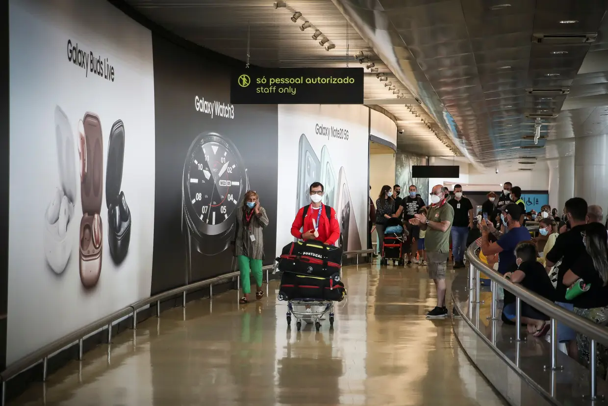 Patrícia mamona chega ao aeroporto de lisboa após ter conquistado este domingo a medalha de prata no triplo salto dos jogos olímpicos de tóquio 2020 para portugal.